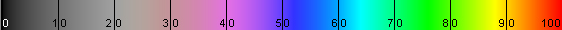 Numbers = Colors System Dynamics models use numbers to keep track of the value of levels (the volume of water in a container) and the value of rates (the speed of flow of water from one container to another). In the Constructivist Modeler, these numerical values are present. However, the numbers are primarily displayed as colors. Each numerical value between 0 and 100 is mapped to a color as indicated on the spectrum below. (Values below 0 or above 100 are not allowed in the Constructivist Modeler.)